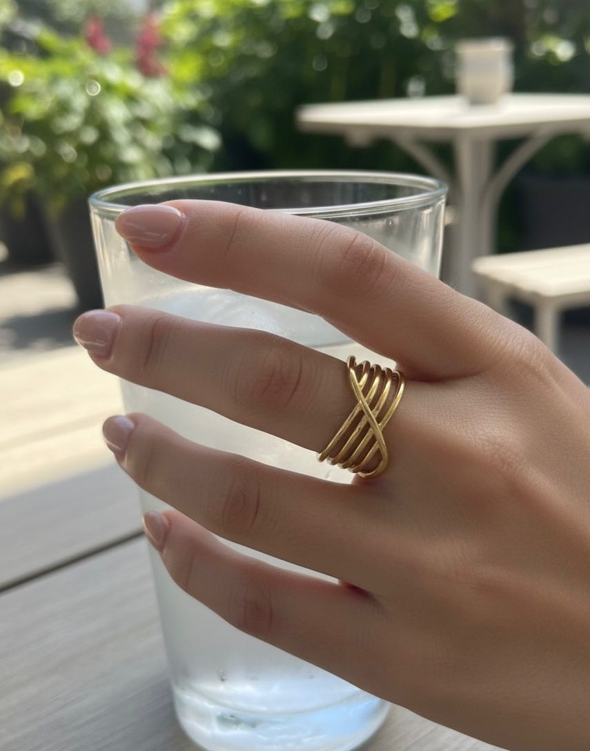 Elevate your everyday style with this elegant gold plated statement ring, crafted with a modern spiral design that wraps gracefully around your finger. Its unique overlapping bands create a bold yet sophisticated look, perfect for both casual and formal occasions. Made with premium materials and finished for a luxe shine, this ring adds an instant touch of glamour, whether worn solo or stacked with other favorites. Lightweight for comfortable wear, it’s an ideal gift or a special treat for yourself.